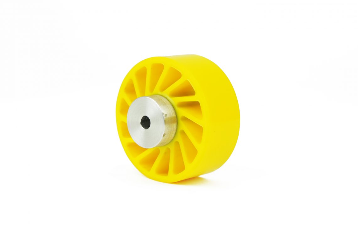 The wide range of durometers and profiles which Meridian Laboratory offers allows for our No-Crush Wheels to be used in a wide range of applications and uses. Within reason, no matter the amount of force or pressure which is required, Zero-Crush wheels subsequently “give” or squish. This interesting style of wheel can provide a unique way to drive, idle, or convey products and materials which vary in size and shape between parts.