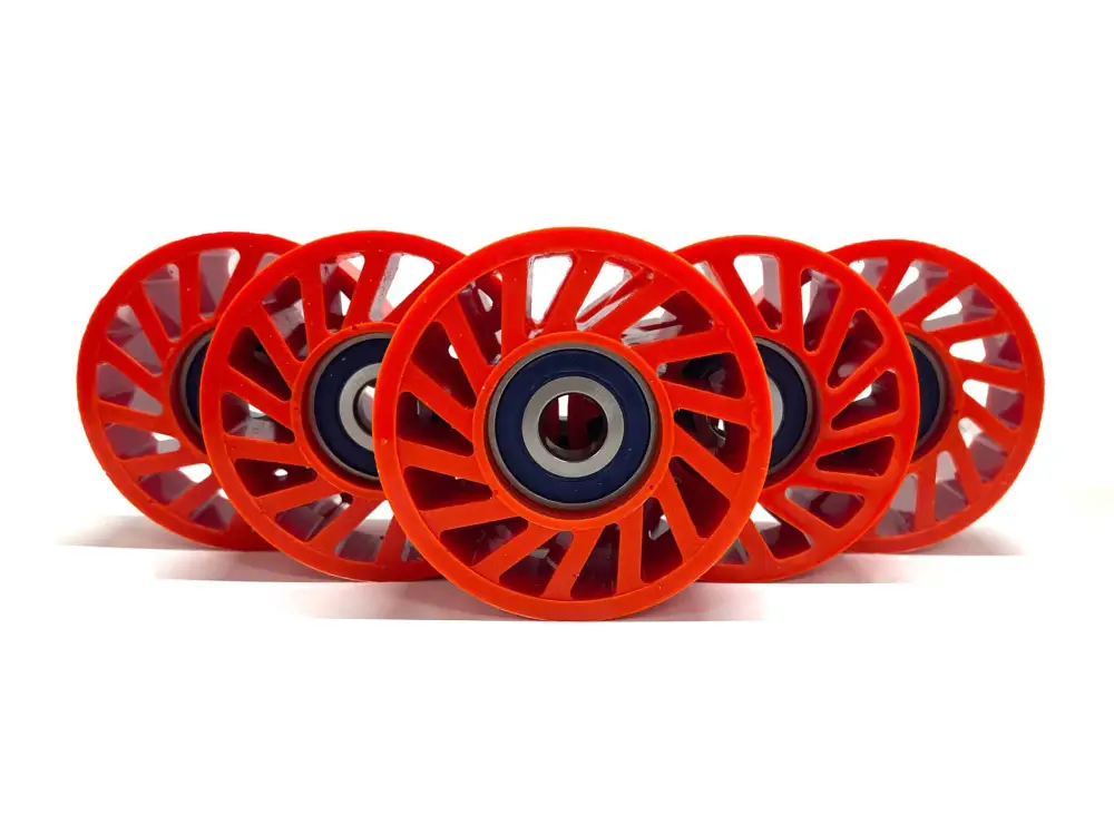 One of the most critical differences between Meridian Laboratory and Durasoft rollers and wheels by Fairlane / Fixtureworks products is the bonding strength between the polyurethane material and the core. Meridian Laboratory utilizes a superior bonding process that ensures a longer lifespan and better performance under continuous use. Durasoft rollers and wheels, in contrast, have a weaker bonding strength, which can lead to premature failure. This is a crucial factor when selecting No-Crush wheels and rollers, as weaker bonding results in increased downtime as well as added replacement costs.